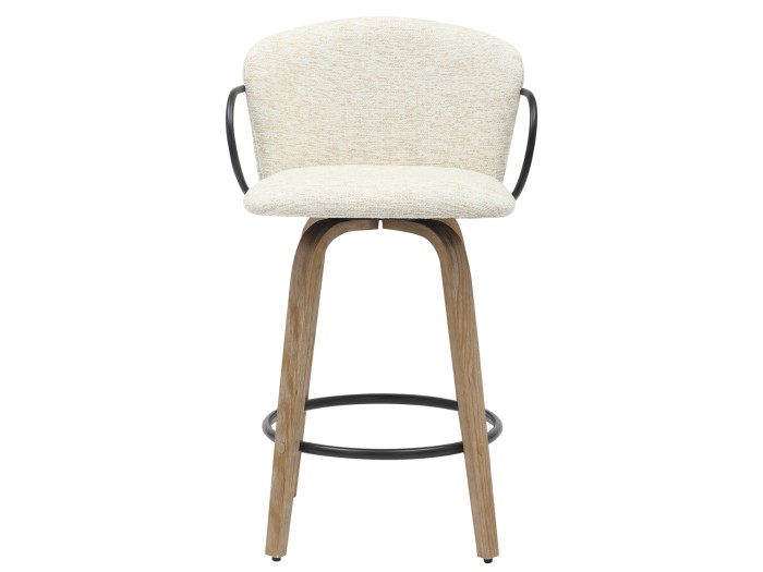 Το NEBOR είναι ένα σκαμπό μεσαίου ύψους με πλάτη και μπράτσα για μπαρ. Τα πόδια είναι κατασκευασμένα από ξύλο (κοντρα-πλακέ θαλάσσης) σε WHITEWASH απόχρωση ενώ το στρογγυλό υποπόδιο είναι μεταλλικό σε ΜΑΥΡΟ χρώμα. Το κάθισμα και η πλάτη είναι επενδυμένα με ΕΚΡΟΥ ύφασμα ενώ τα μπράτσα με το ιδιαίτερο σχήμα είναι μεταλλικά.