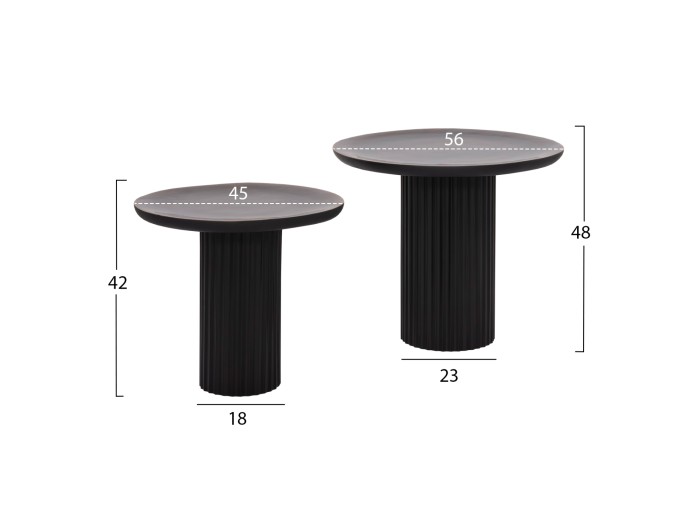Το ELAF είναι ένα σετ που αποτελείται από 2 τραπέζια σαλονιού με πολύ ιδιαίτερο design αλλά και υλικά κατασκευής. Οι σχεδόν στρογγυλές επιφάνειες είναι από ξύλο mango σε καφέ χρώμα, και σε εμαγιέ ημιδιάφανη υλοποίηση. Οι βάσεις είναι μεταλλικές σε μαύρο χρώμα με πτυχωτό σχέδιο. Τα διαφορετικά ύψη τονίζουν την πρακτικότητα αυτού του σετ που θα καλύψει τις ανάγκες στο σαλόνι σας.