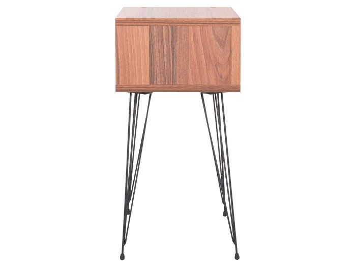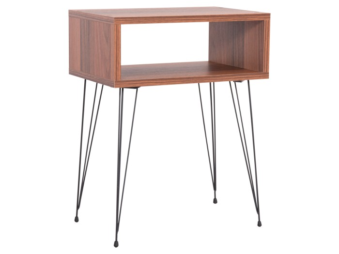 Το κομοδίνο TODD είναι κατασκευασμένο από μελαμίνη 18mm σε ΚΑΡΥΔΙ χρώμα, ενώ τα 4 πόδια του αποτελούνται από μεταλλικές ράβδους σε ΜΑΥΡΟ χρώμα. Πρόκειται για ένα πρακτικό και βολικό σε διαστάσεις έπιπλο που χάρη στον ανοιχτό σχεδιασμό του μπορεί να προσφέρει λύσεις ανά πάσα στιγμή.