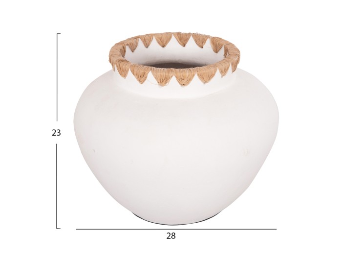 Το διακοσμητικό βάζο RENTON(Μ) είναι φαρδύ με μεγάλο στόμιο με πλέξη ψάθας. Είναι σε ΛΕΥΚΗ απόχρωση και μπορεί να ταιριάξει οπουδήποτε το θελήσετε. Είτε στο σπίτι είτε σε επαγγελματικούς χώρους.