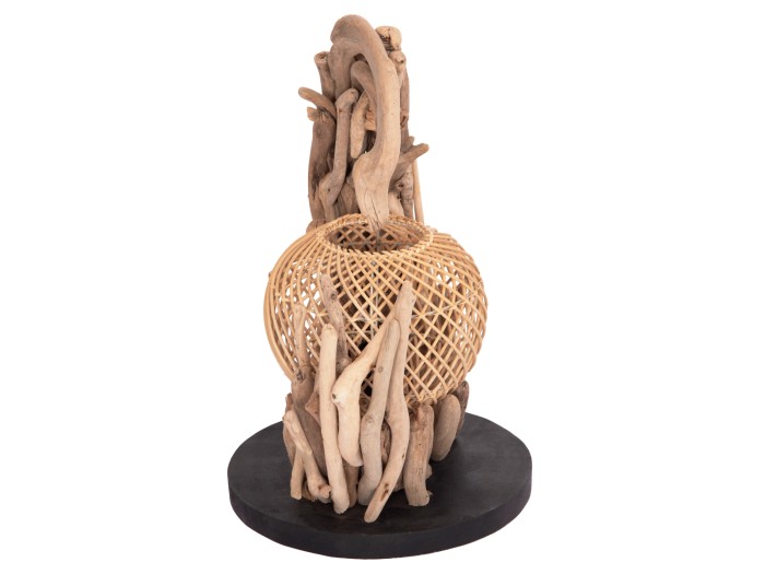 Το φωτιστικό έχει γίνει από driftwood. Πρόκειται για κομμάτια ξύλου που έχουν ξεβραστεί σε μια ακτή ή παραλία μιας θάλασσας, λίμνης ή ποταμού από τη δράση των ανέμων, της παλίρροιας ή των κυμάτων. Αυτά τα κομμάτια συλλέγονται, και υπόκεινται σε επεξεργασία προκειμένου να χρησιμοποιηθούν για διάφορους σκοπούς.