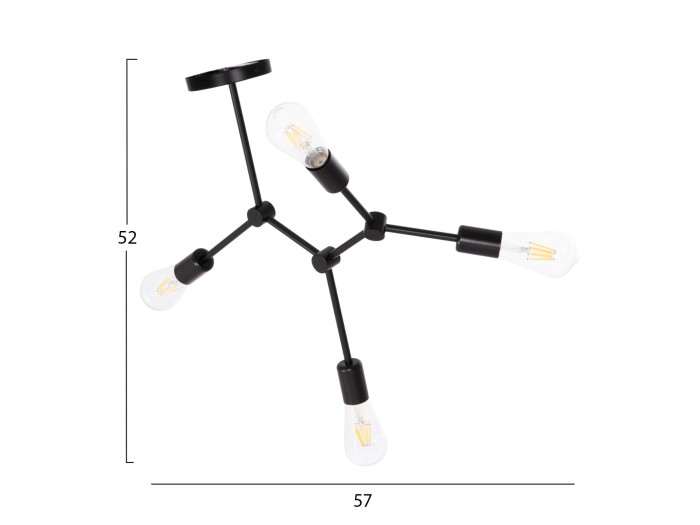 Το φωτιστικό οροφής LIGHTY είναι μεταλλικό με μαύρη βάση και μαύρους βραχίονες σε μοντέρνο design. Στις 4 άκρες είναι τοποθετημένες οι λάμπες του 4-φωτου χωρίς καπέλα. Αυτό το φωτιστικό θα φωτίσει με άπλετο φως τον χώρο που θέλετε και θα εντυπωσιάσει με το όμορφο design του.