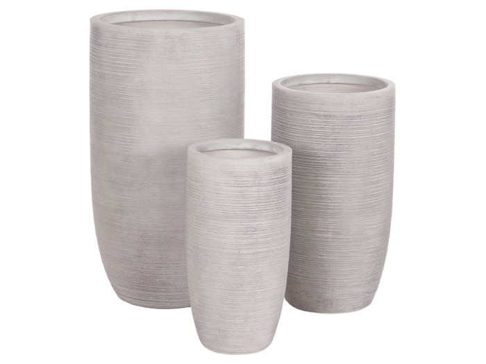 Σας παρουσιάζουμε την σειρά GARDENER που περιλαμβάνει σετ γλαστρών κατασκευασμένες από FiberClay και αποτελεί την τελευταία προσθήκη στην γκάμα μας. Αυτό το σετ αποτελείται από 3 κυλινδρικές γλάστρες σε διαφορετικά μεγέθη σε cement χρώμα. Ιδανικές για εξωτερικούς χώρους.