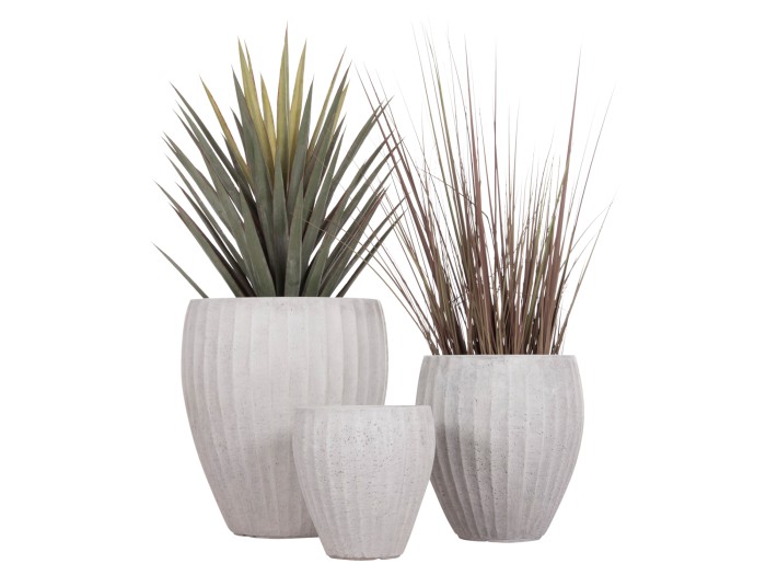 --Οι γλάστρες από FiberClay είναι ελαφριές και ανθεκτικές στην υπεριώδη ακτινοβολία, κάτι που αποτελεί μεγάλο πλεονέκτημα. Μια γλάστρα από σκυρόδεμα ή φυσική πέτρα είναι εξαιρετικά βαριά. Άρα, το γεγονός ότι το FiberClay είναι ελαφρύ υλικό, είναι ιδιαίτερα σημαντικό για κήπους μπαλκονιού και στέγης.