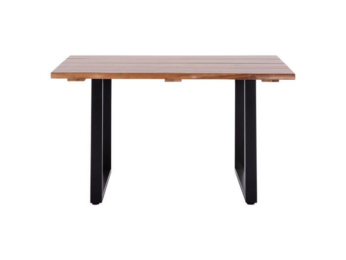 Ανακαλύψτε το μοναδικό τραπέζι για εξωτερικούς χώρους FRIGGO με επιφάνεια από φυσικό μασίφ ξύλο ΑΚΑΚΙΑΣ σε ΦΥΣΙΚΟ χρώμα. To σχήμα είναι ορθογώνιο και στηρίζεται σε δύο μαύρες μεταλλικές βάσεις. Το μοντέρνο design συναντά την φύση και δίνει μια διαχρονική και ζεστή αίσθηση στον χώρο σας.