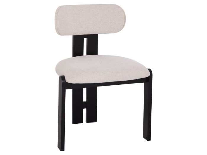 Η καρέκλα τραπεζαρίας KARVO αποτελεί μια μοναδική πρόταση τόσο για το σπίτι, όσο και για τον επαγγελματικό σας χώρο. Ο σκελετός με το πολύ ιδιαίτερο «τρίποδο» design είναι από ποιοτικό ξύλο σε ΜΑΥΡΟ χρώμα, ενώ το κάθισμα και η κυρτή πλάτη είναι επενδυμένα με υπέροχο ανάγλυφο ύφασμα σε ΕΚΡΟΥ χρώμα.