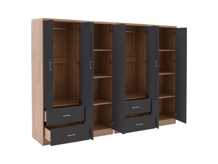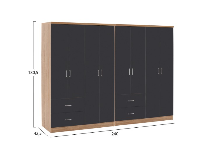 Ντουλάπα μελαμίνης 8-φυλλη σε χρώμα SONAMA-ΣΚΟΥΡΟ ΓΚΡΙ, που αποτελείται από 2 πανομοιότυπες 4-φυλλες ντουλάπες.