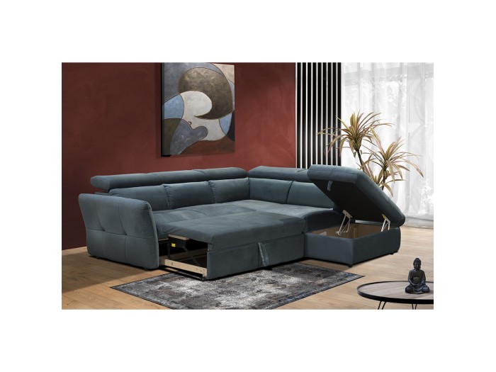 Ανακαλύψτε την απόλυτη κομψότητα και λειτουργικότητα με τον καναπέ κρεβάτι Monserat. Αυτός ο εκλεπτυσμένος καναπές, με την δεξιά γωνία του και το υψηλής ποιότητας ύφασμα Chenille σε μοντέρνα πετρόλ απόχρωση, προσθέτει έναν αέρα πολυτέλειας και άνεσης σε κάθε χώρο. Η προσεγμένη κατασκευή και οι πρακτικές του δυνατότητες τον καθιστούν ιδανική επιλογή για κάθε σπίτι. Το ύφασμα με την τεχνολογία Easy Clean τον καθιστούν ιδανικό για καθημερινή χρήση. Καθαρίζεται εύκολα, διατηρώντας τον καναπέ σας πάντα σε άριστη κατάσταση. Η δυνατότητα μετατροπής σε κρεβάτι προσφέρει ευελιξία και επιπλέον χώρο για τους επισκέπτες. Επιπλέον, ο ενσωματωμένος αποθηκευτικός χώρος στο σκαμπώ σας επιτρέπει να κρατάτε τον χώρο σας τακτοποιημένο, ενώ τα ανακλινόμενα προσκέφαλα προσφέρουν την απόλυτη άνεση.