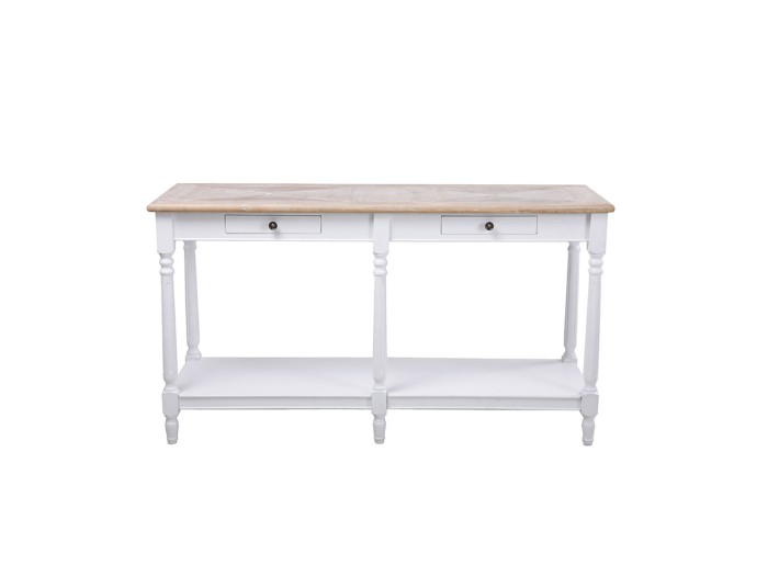 Αναδείξτε τη ρουστίκ κομψότητα και τη διαχρονική γοητεία του χώρου σας με την κονσόλα History. Η επιφάνειά της, κατασκευασμένη από επένδυση φυσικού ξύλου σε ζεστή φυσική απόχρωση, προσδίδει αυθεντική αίσθηση και χαρακτήρα. Ο σκελετός από ξύλο εξασφαλίζει ανθεκτικότητα και κλασική αισθητική που ταιριάζει σε κάθε στιλ διακόσμησης. Η κονσόλα History διαθέτει δύο πρακτικά συρτάρια, ιδανικά για αποθήκευση μικροαντικειμένων, ενώ η ευρύχωρη επιφάνειά της προσφέρει άφθονο χώρο για διακοσμητικά και χρηστικά αντικείμενα. Ιδανική για την είσοδο, το σαλόνι ή την τραπεζαρία σας, η κονσόλα History συνδυάζει λειτουργικότητα και απαράμιλλη φινέτσα, αναβαθμίζοντας κάθε γωνιά του σπιτιού σας.
