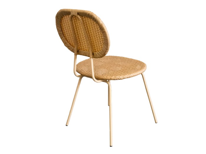 Η καρέκλα Prisma αποτελεί έναν εκλεπτυσμένο συνδυασμό φυσικής αισθητικής και σύγχρονου σχεδιασμού. Κατασκευασμένη από συνθετικό rattan σε φυσική απόχρωση, αποπνέει ζεστασιά και διακριτική κομψότητα. Ο μεταλλικός σκελετός, επίσης σε φυσική απόχρωση, προσφέρει ανθεκτικότητα και σταθερότητα, διατηρώντας παράλληλα μια ελαφριά και κομψή γραμμή. Με την ιδιαίτερη στρογγυλεμένη πλάτη και το εργονομικό κάθισμα, η Prisma είναι ιδανική τόσο για εσωτερικούς όσο και για εξωτερικούς χώρους, προσφέροντας άνεση και στυλ σε κάθε περιβάλλον.