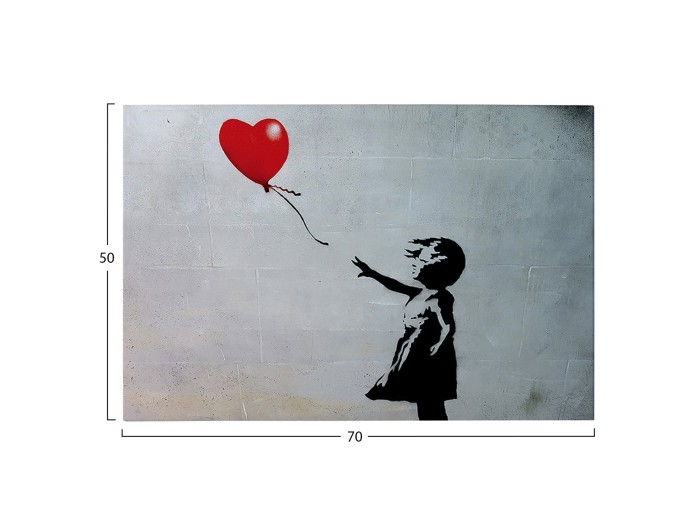 Ένας πίνακας τοίχου μεταμορφώνει τον τρόπο που αντιλαμβανόμαστε έναν χώρο. Διακοσμήστε, λοιπόν, τον χώρο σας με την καινούργια σειρά πινάκων τοίχου GOBI! Αυτός ο πίνακας που απεικονίζει ένα κορίτσι να αφήνει ένα κόκκινο μπαλόνι σε σχήμα καρδιάς, έχει υλοποιηθεί σε ψηφιακά εκτυπωμένο καμβά (50% βαμβάκι-50% πολυεστέρας) σε πλαίσιο από ξύλο.