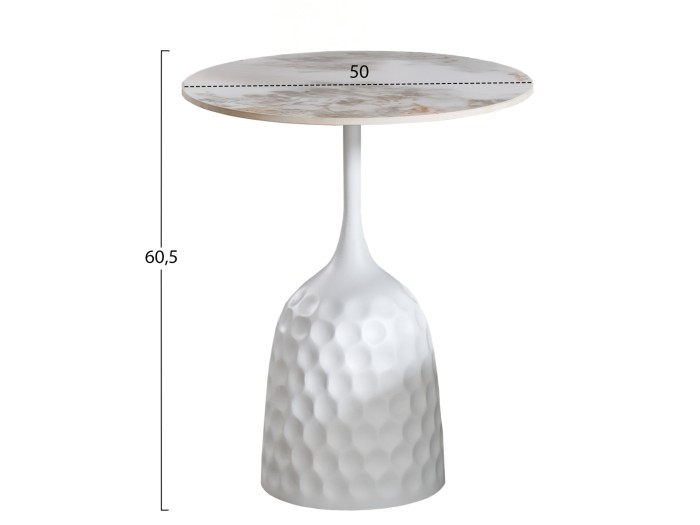 Το LONGSTEM είναι ένα εντυπωσιακό τραπέζι που θα κοσμήσει το σαλόνι σας. Η ψηλή κυλινδρική του βάση είναι μεταλλική με διάστικτη τεχνοτροπία σε ΛΕΥΚΟ χρώμα, ενώ η στρογγυλή επιφάνεια είναι κατασκευασμένη από γυαλιστερό sintered stone σε χρωματικό σχήμα CALACATA GOLD. Ιδανικό τόσο για το σπίτι, όσο και για επαγγελματικούς χώρους.