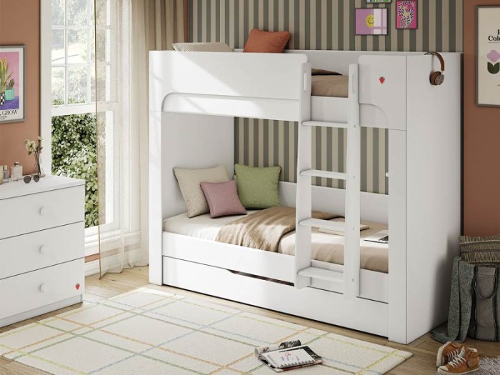 Με την προσθήκη του συρταριού στο κάτω μέρος, δημιουργείται έξτρα αποθηκευτικός χώρος για λευκά είδη, κουβέρτες ή ρούχα, κάνοντας την κουκέτα ακόμη πιο έξυπνη επιλογή για μικρά δωμάτια.
