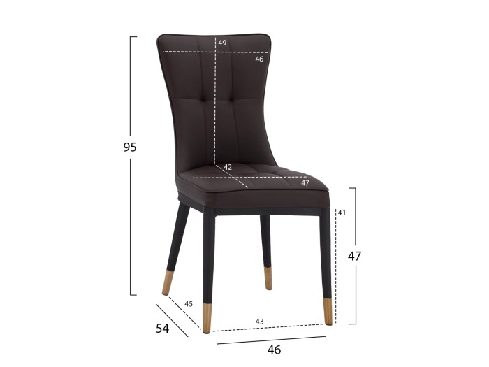 Η καρέκλα SAMMY είναι επενδυμένη με τεχνόδερμα σε καφέ απόχρωση, με μεταλλικό μαύρο σκελετό και χρυσές λεπτομέρειες.