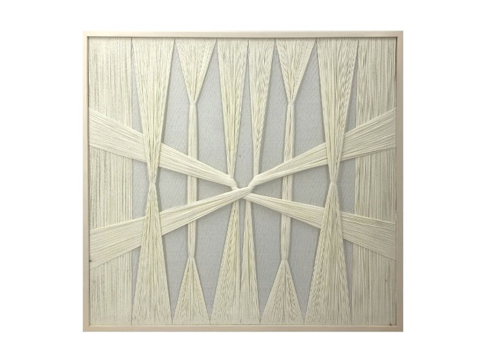 Στο έργο Walk Wild, το λευκό νήμα ακολουθεί μια δυναμική πορεία πάνω στον καμβά, συνδέοντας και ταυτόχρονα χωρίζοντας σημεία, δημιουργώντας νέες, απρόβλεπτες διαδρομές. Η κίνηση του νήματος προκαλεί την αίσθηση μιας ατέρμονης περιπλάνησης, ενώ τα κενά που δημιουργούνται ανάμεσα ενισχύουν την αίσθηση του χώρου και της ανακάλυψης. Το έργο Walk Wild αποτυπώνει την ένταση και την ενέργεια της εξερεύνησης και θα προσδώσει στον χώρο σας την ομορφιά του χειροποίητου με μίνιμαλ διάθεση.