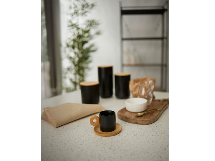 Η κούπα espresso Nordic αποτελεί τον ορισμό της κομψότητας και της εκλεπτυσμένης αισθητικής. Κατασκευασμένη από φίνα Πορσελάνη, συνδυάζει την ελαφρότητα και την ανθεκτικότητα με τη μοναδική αίσθηση πολυτέλειας. Το μαύρο χρώμα της, συνδυασμένο με bamboo,προσδίδει μία μοντέρνα αλλά και διαχρονική πινελιά, καθιστώντας την ιδανική για καθημερινές στιγμές απόλαυσης ή για ιδιαίτερες περιστάσεις. Με την κούπα espresso Nordic, κάθε γουλιά γίνεται μια απόλαυση.