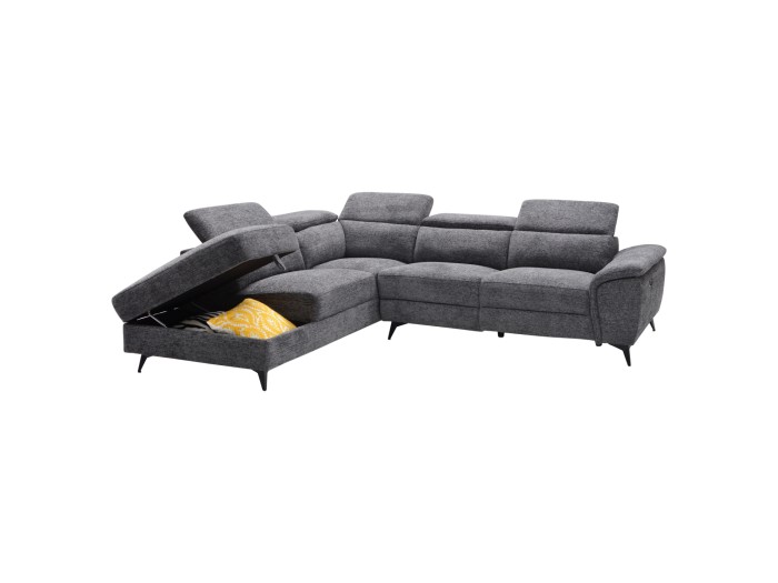 Ο γωνιακός καναπές RESTRO συνδυάζει προηγμένη λειτουργικότητα με σύγχρονη αισθητική, δημιουργώντας το απόλυτο σημείο χαλάρωσης για το σύγχρονο σαλόνι. Με μηχανισμό ανάκλισης πλάτης σε πέντε σημεία και ηλεκτρική ανάκλιση στην γωνιακή θέση μέσω ενός διακόπτη στο μπράτσο, προσφέρει εμπειρία άνεσης υψηλών προδιαγραφών, ενώ ο ενσωματωμένος αποθηκευτικός χώρος στο τελευταίο τμήμα της γωνίας ενισχύει τη λειτουργικότητά του, διατηρώντας τον χώρο οργανωμένο και κομψό.