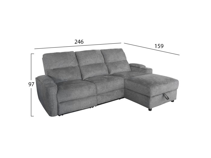 Τριθέσιος Δεξιός Γωνιακός Καναπές SYNTHIA-- ΓΚΡΙ Ύφασμα, με Ηλεκτρικό Ανακλινόμενο Κάθισμα, Αποθηκευτικό Χώρο & Πτυσσόμενο Τραπέζι