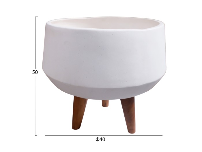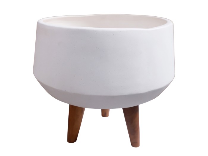 Η φαρδιά και ρηχή γλάστρα εσωτερικού χώρου (κασπό) QUAN είναι κατασκευασμένη από Fiber Cement σε ΛΕΥΚΟ χρώμα. Το ιδιαίτερο χαρακτηριστικό της είναι ότι συνοδεύεται και τοποθετείται σε μια ψηλή σχετικά τρίποδη βάση από ξύλο teak. Κατά την χρήση της συνιστάται η τοποθέτηση εσωτερικού δοχείου για την σωστή διατήρηση της γλάστρας.