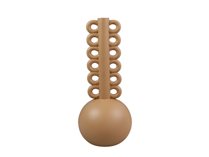 Τα βάζα Thyra, κατασκευασμένα από ανθεκτικό polyresin, είναι ένας εντυπωσιακός συνδυασμός σύγχρονου σχεδιασμού και καλλιτεχνικής αισθητικής. Η δομή με τους βρόχους σε συνδυασμό με τις αποχρώσεις της terracotta και του γκρι προσδίδουν μια γλυπτική διάσταση. Ιδανικά ως κεντρικό διακοσμητικό στοιχείο ή ως μέρος μιας επιμελημένης σύνθεσης, τα βάζα Thyra θα φέρουν μια τολμηρή και δημιουργική πινελιά στη διακόσμηση του σπιτιού ή του επαγγελματικού σας χώρου.