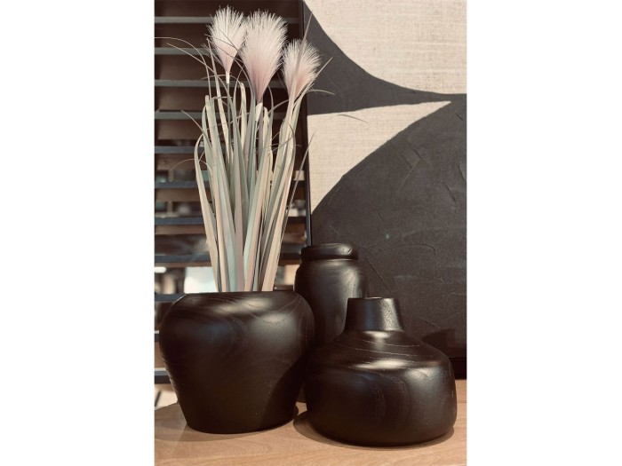 Το έντονο μαύρο χρώμα και η φυσική αίσθηση του ξύλου στα διακοσμητικά βάζα "Nubia" θα απογειώσουν το ethnic στυλ στον χώρο σας. Με πολλές παραλλαγές σε σχήματα και ύψη, μπορούν να συνδυαστούν εντυπωσιακά μεταξύ τους, με τους ξύλινους δίσκους Nubia αλλά και με τα δίχρωμα βάζα Nubia από plywood και σχοινί.