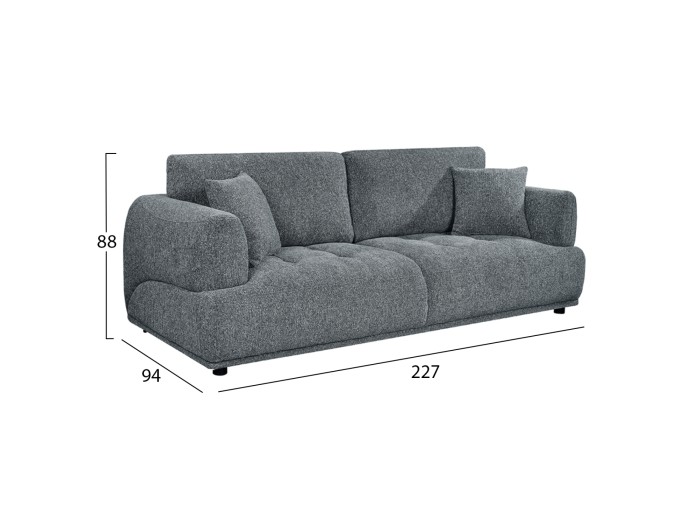 Ο καναπές STRUCTO αποτελεί μια κομψή και διαχρονική επιλογή για σύγχρονους χώρους καθιστικού. Ο λιτός αλλά επιβλητικός σχεδιασμός του, με καθαρές γραμμές και ψηλά φαρδιά μπράτσα, δημιουργεί μια αίσθηση άνεσης και ισορροπίας στον χώρο. Η επένδυση με ποιοτικό ανάγλυφο ύφασμα σε ΓΚΡΙ απόχρωση προσφέρει μοντέρνα αισθητική και ταιριάζει εύκολα με διαφορετικά στυλ διακόσμησης. Οι πλούσιες διαστάσεις του εξασφαλίζουν άνετο κάθισμα για τρία άτομα, ενώ τα δύο διακοσμητικά μαξιλάρια συμπληρώνουν ιδανικά την εμφάνιση και την άνεση.