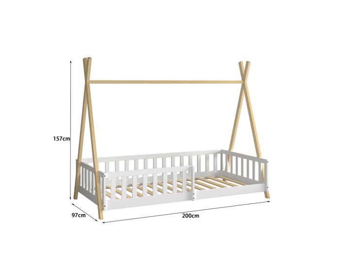 Σας παρουσιάζουμε το «MUNK» που είναι ένα καινούργιο παιδικό κρεβάτι τύπου Montessori που σημαίνει ότι έχει σχεδιαστεί σύμφωνα με το εκπαιδευτικό σύστημα Montessori, κατά το οποίο τα παιδιά μαθαίνουν καλύτερα, όταν επιλέγουν μόνα τους τι θα κάνουν. Το χαμηλό ύψος κρεβατιού βοηθά να εξερευνούν την αυτονομία τους και να ανεβοκατεβαίνουν από το κρεβάτι τους ελεύθερα ανά πάσα στιγμή. Είναι σε διάσταση για μονό στρώμα 90x190 εκ, και αποτελεί μια άριστης ποιότητας, μοντέρνα και ασφαλή επιλογή για το παιδικό δωμάτιο. Είναι ξύλινο σε διχρωμία ΦΥΣΙΚΟΥ-ΛΕΥΚΟΥ βαμμένο με αβλαβές βερνίκι με βάση το νερό και μη τοξικό, ιδανικό για παιδιά. Το στρώμα τοποθετείται απευθείας σε τάβλες κατασκευασμένες από ξυλεία κόντρα πλακέ. Το κρεβάτι έχει σχήμα σκηνής που θα δώσει μια ευχάριστη, «ζεστή», και παιχνιδιάρικη όψη σε κάθε παιδικό δωμάτιο, ενώ διαθέτει περιμετρικά κάγκελα για ακόμα μεγαλύτερη ασφάλεια.