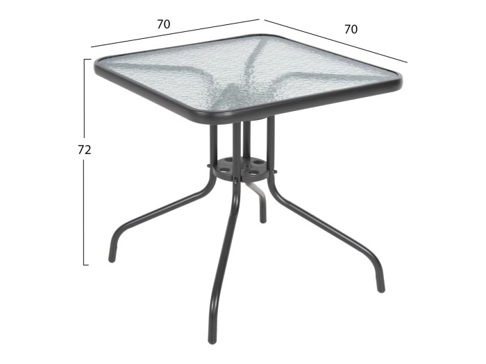 Αυτό το μικρό Σετ τραπεζαρίας εξωτερικού χώρου διαθέτει τετράγωνο τραπέζι με ΓΚΡΙ μεταλλικό σκελετό και γυάλινη (safety glass) θολή επιφάνεια, και 2 μεταλλικές πολυθρόνες με κάθισμα& πλάτη από textilene ύφασμα σε ΓΚΡΙ, με ξύλινη επένδυση στα μπράτσα.