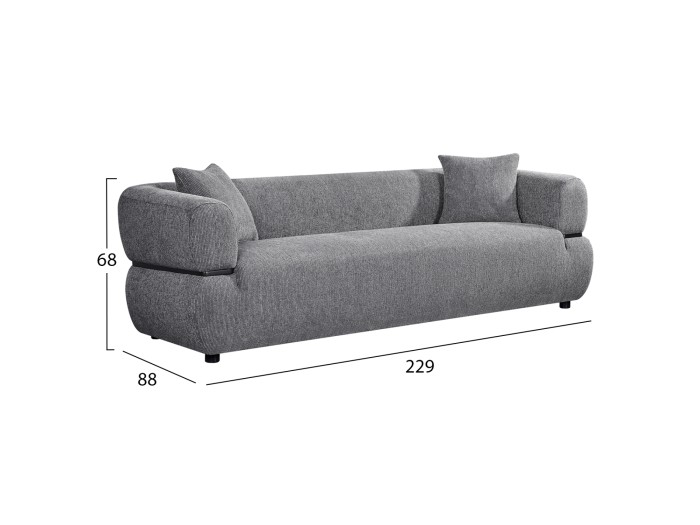 •Διαστάσεις: 229 x 88 x 68Υ εκ. (Ιδανικό μέγεθος για άνετο κάθισμα 3 ατόμων).