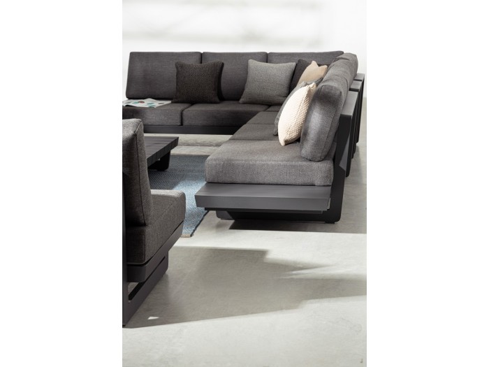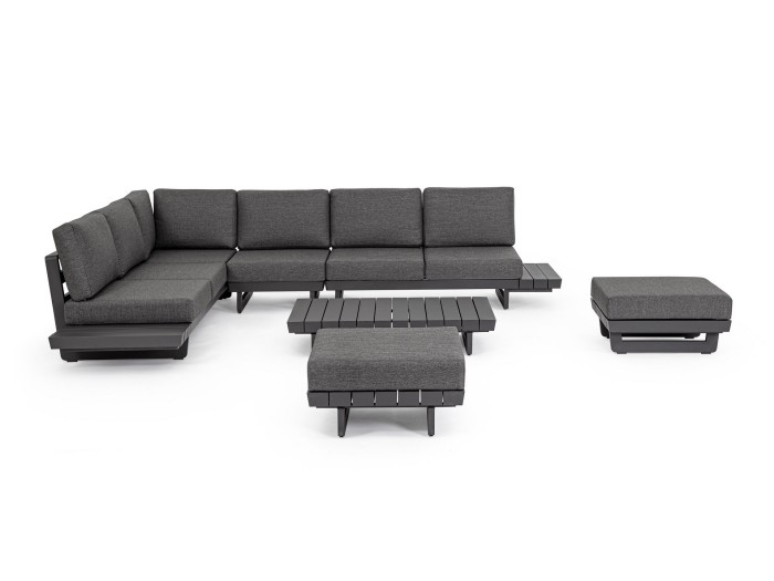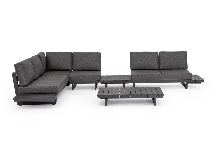 Σετ δύο καναπέδων για εξωτερικό χώρο, ενός διθέσιου κι ενός τριθέσιου. Οι καναπέδες έχουν σκελετό από αλουμίνιο και μαξιλάρια υφασμάτινα με αφαιρούμενο κάλυμμα σε χρώμα ανθρακί. Μπορείτε να κάνετε άπειρους συνδυασμούς με τους συγκεκριμένους καναπέδες όπως θα δείτε στις φωτογραφίες. Μια εξαιρετική και μοντέρνα επιλογή για τον κήπο σας!| Μήκος | 253 |