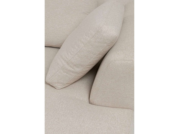 Γωνιακός καναπές σε μπεζ χρώμα, που περιλαμβάνει 5 μαξιλάρια για μέγιστη άνεση στο κάθισμα και άφθονο χώρο για αγκαλιές