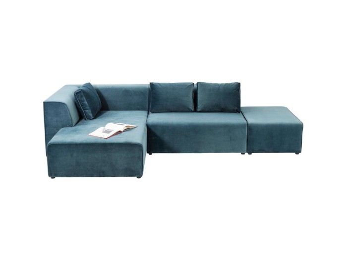 Μοντέρνος αρθρωτός καναπές που έχει διαχρονικό σχεδιασμό με το κλασικό κυβοειδές σχήμα του - εδώ σε βελούδινο μπλε χρώμα