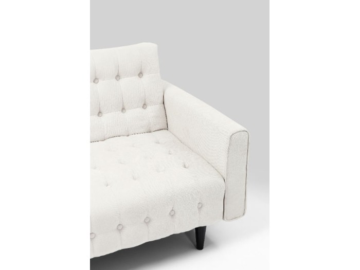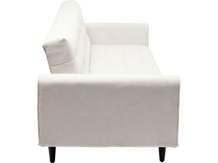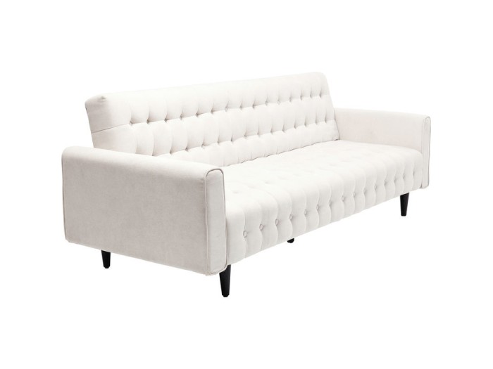 Καναπές-κρεβάτι με πολυεστερικό ύφασμα σε μπεζ χρώμα. Ο σκελετός είναι κατασκευασμένος από ξύλο ευκαλύπτου και τα πόδια από μασίφ λακαρισμένο ξύλο σε μαύρο χρώμα.