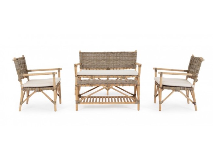Διθέσιος καναπές εξωτερικού χώρου, ο οποίος είναι κατασκευασμένος από rattan με ύφανση kubu. Διαθέτει μαξιλάρι καθίσματος, με αφαιρούμενο κάλυμμα σε χρώμα λευκό. Μια εξαιρετική επιλογή για τον κήπο σας!| Μήκος | 123 |