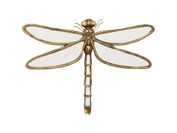 Διακοσμητικό λιβελούλα κατασκευασμένη από πολυρεσίνη και γυαλί καθρέφτη σε χρυσό χρώμα.