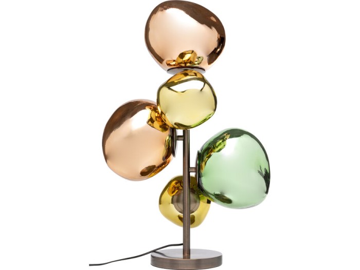 Ένα φωτιστικό που ξεπερνά τη λειτουργία του και μετατρέπεται σε διακοσμητικό έργο τέχνης. Οι γυάλινες σφαίρες σε ζεστές, πολύχρωμες αποχρώσεις δημιουργούν ένα εντυπωσιακό παιχνίδι φωτός και αντανακλάσεων, χαρίζοντας στον χώρο μία ατμοσφαιρική και ταυτόχρονα εκλεπτυσμένη αισθητική.