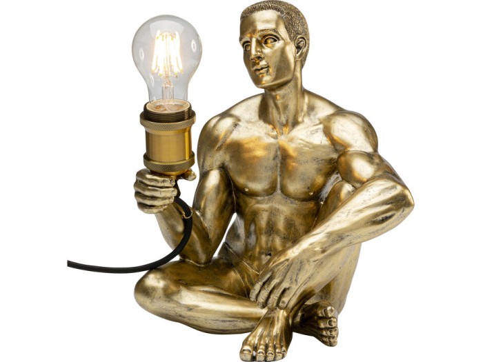 Ένα εντυπωσιακό φωτιστικό επιτραπέζιο, άντρας που κάθεται, σε χρώμα χρυσό. Μια εξαιρετική επιλογή για τον χώρο σας!