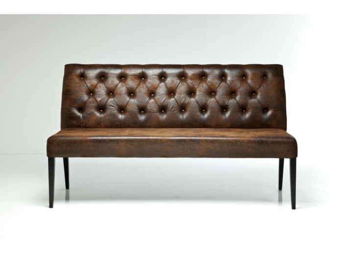 Ένας κομψός πάγκος με ταπετσαρία σε vintage εμφάνιση - Αυτός ο πάγκος εντυπωσιάζει με το δερμάτινο κάλυμμα και την κομψή ταπετσαρία Chesterfield στην πλάτη! Το φινίρισμα της επιφάνειας του καλύμματος δημιουργεί γοητευτική vintage ατμόσφαιρα. Ο πάγκος στέκεται σε τέσσερα λεπτά πόδια από βαμμένο ξύλο οξιάς. Με τη ζεστή απόχρωση του καφέ, αυτός ο πάγκος όχι μόνο τραβάει το βλέμμα αλλά είναι και εξαιρετικά άνετος χάρη στη στιβαρή ταπετσαρία του! Ιδανικό για να κάνετε ένα σύντομο ή και λίγο μεγαλύτερο διάλειμμα.