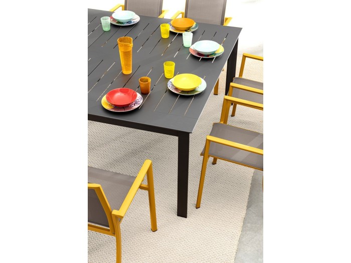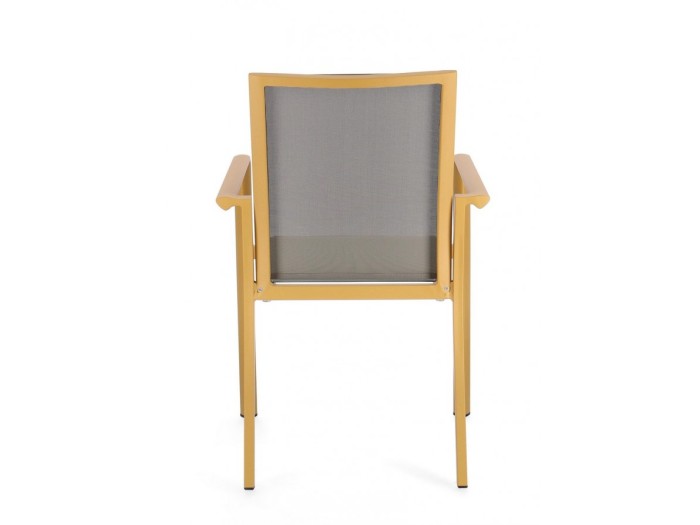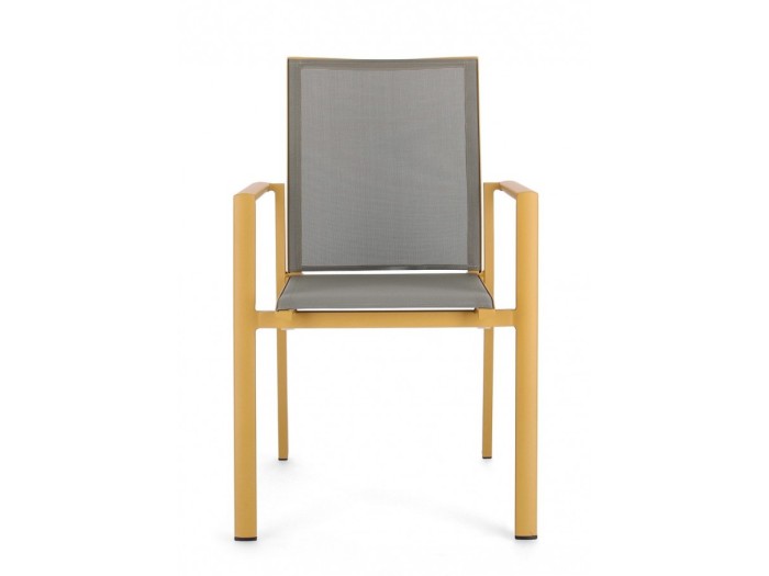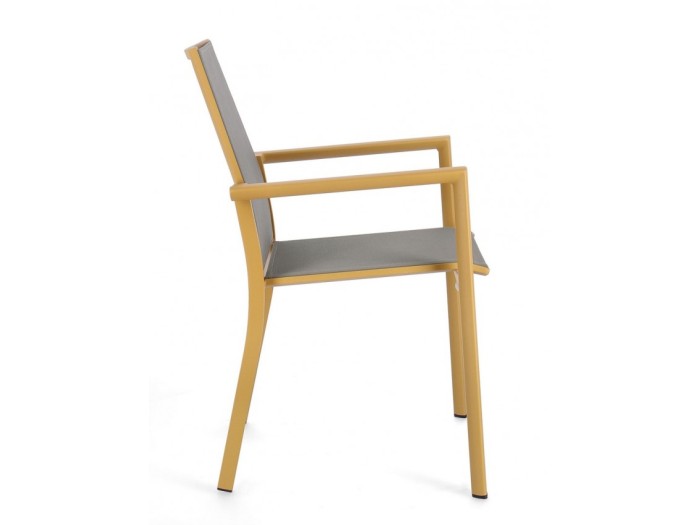 Μια εντυπωσιακή και μοντέρνα καρέκλα εξωτερικού χώρου, η οποία έχει πλαίσιο αλουμινίου κίτρινο και κάθισμα και πλάτη σε χρώμα γκρι από textilene. Μια εξαιρετική επιλογή για τον χώρο σας!