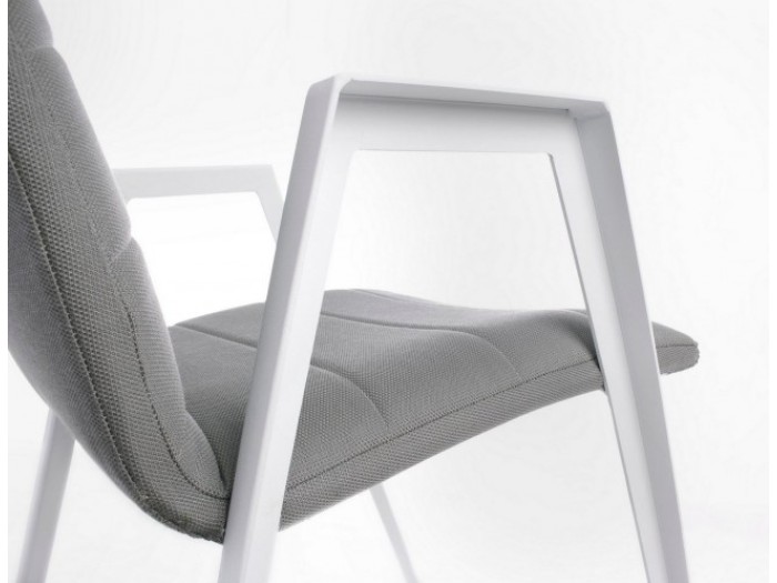 Καρέκλα εξωτερικού χώρου με μπράτσα από αλουμίνιο με ηλεκτροστατική βαφή σε λευκό χρώμα.