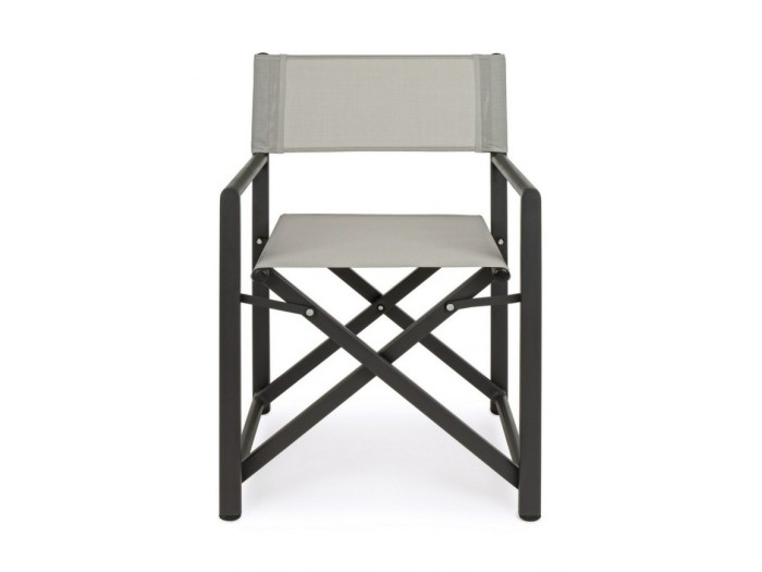 Πτυσσόμενη καρέκλα με μπράτσα εξωτερικού χώρου. Ο σκελετός είναι κατασκευασμένος από αλουμίνιο ηλεκτροστατικής βαφής σε μαύρο χρώμα, ενώ το κάθισμα και η πλάτη είναι κατασκευασμένα από συνθετικό ύφασμα textilene.