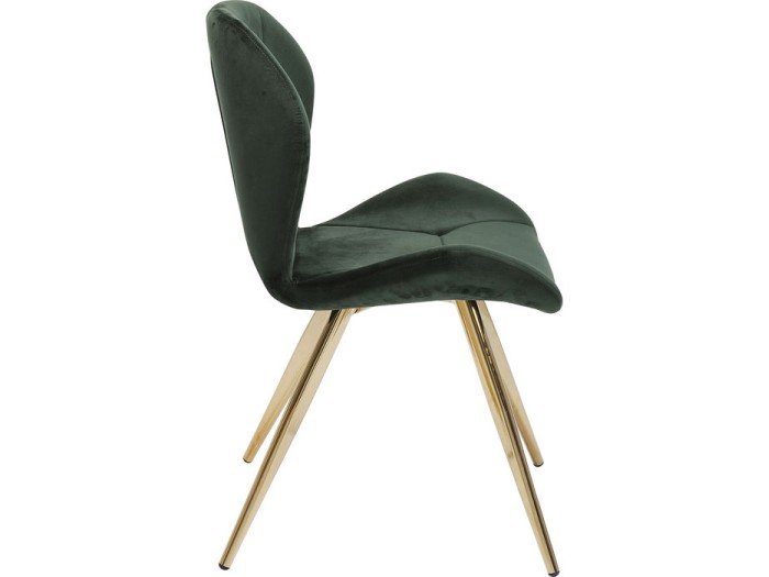 Καρέκλα με μεταλλικό σκελετό σε χρυσό χρώμα και κάθισμα με βελούδινη υφή σε πράσινο χρώμα.