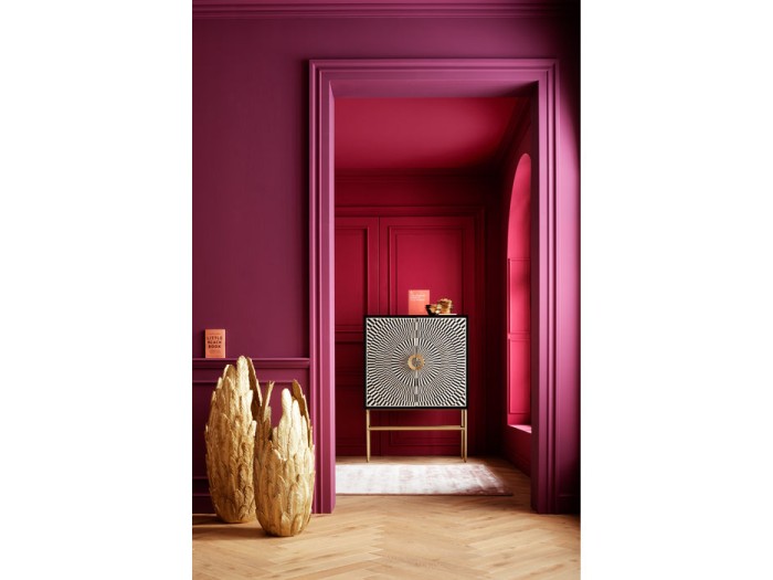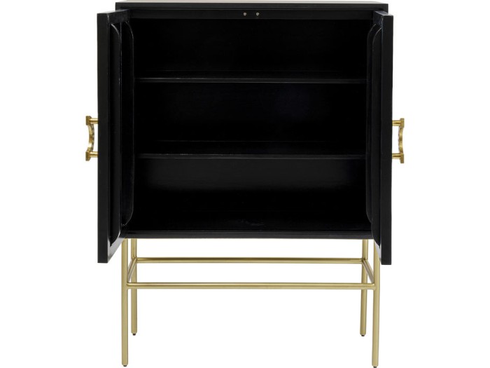 Φανταστικό έπιπλο μπαρ εξαιρετικής ποιότητας, που με το ασπρόμαυρο σχέδιο οπτικής ψευδαίσθησης στις δύο πόρτες και τη μεταλλική χρυσή βάση, θα δώσει glam γοητεία μυστηρίου στο χώρο σας.