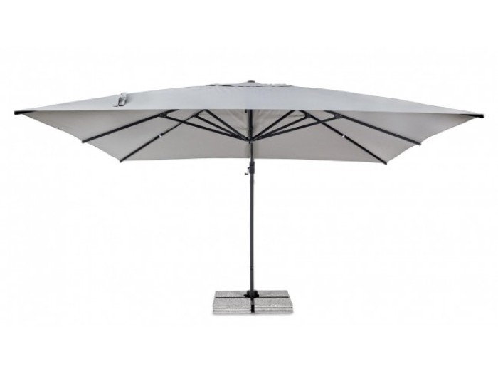 Ομπρέλα με σκελετό αλουμινίου (powder coated), 8 ακτίνες, κλίση αριστερά - δεξιά, κάθετη κλίση 5 θέσεων και βάση περιστρεφόμενη 360° από ατσάλι. Περιλαμβάνει πλάγιο στύλο στήριξης. Δεν περιλαμβάνει πλάκες τσιμεντένιες.- Ποιότητα: Αλουμίνιο