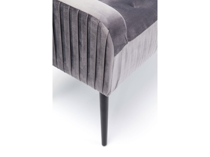 Παγκάκι σε γκρι χρώμα με ύφασμά βελούδινης αφής και πόδια από λακαρισμένο ατσάλι σε μαύρο χρώμα.
