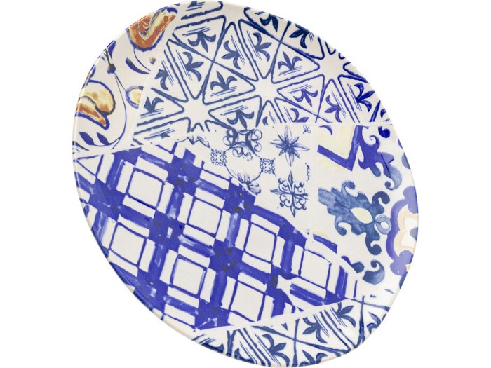 Κεραμικό πιάτο λευκό με μπλε σχέδια.