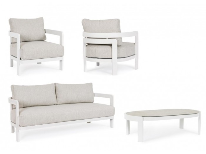 Το σαλόνι είναι από πλαίσιο Αλουμινίου σε minimal design και μαξιλάρια με αφαιρούμενο κάλυμμα για ευκολία στην χρήση