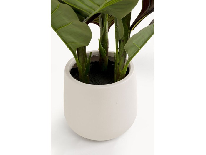 Η ρεαλιστική του κατασκευή αποδίδει με λεπτομέρεια τη φυσική μορφή ενός τροπικού φυτού, ενώ η σταθερή βάση σε γλάστρα ολοκληρώνει το σύνολο με minimal αισθητική. Είναι ιδανικό για σαλόνια, επαγγελματικούς χώρους ή εισόδους, προσθέτοντας χρώμα και φρεσκάδα χωρίς καμία ανάγκη συντήρησης.