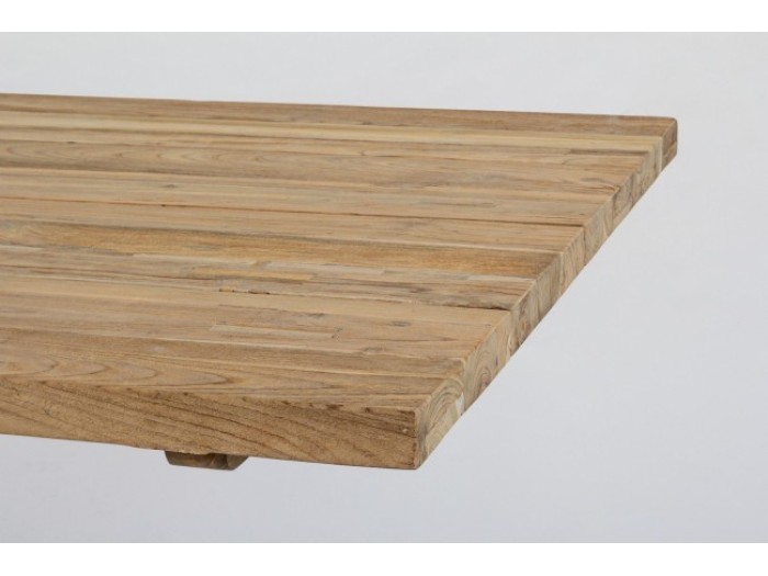 Εντυπωσιακή τραπεζαρία με επιφάνεια ανακατασκευασμένου ξύλου teak SVLK πιστοποίησης, και μεταλλική βάση αλουμινίου ηλεκτροστατικής πολυεστερικής βαφής.