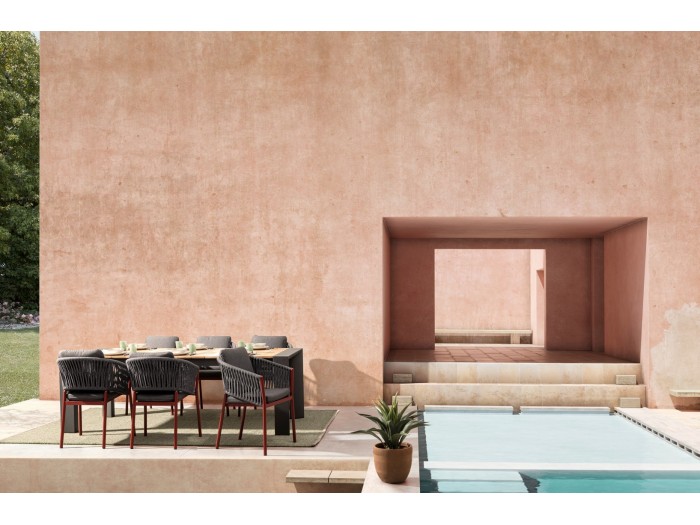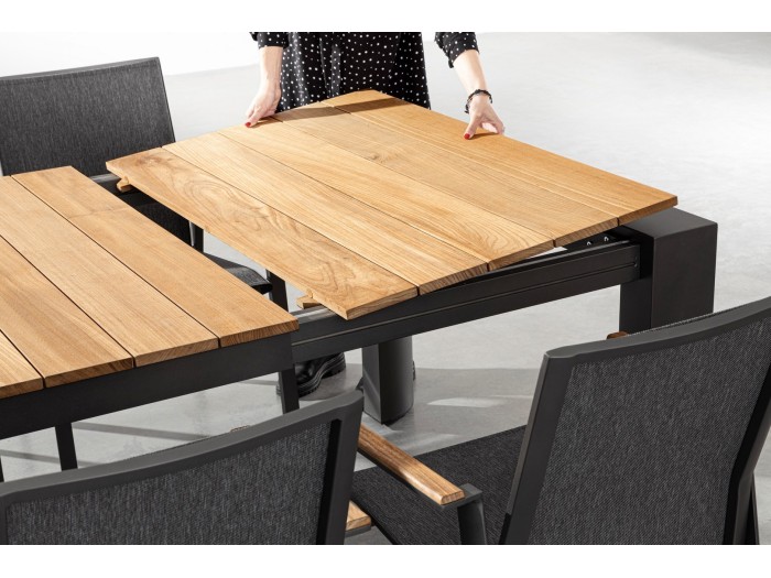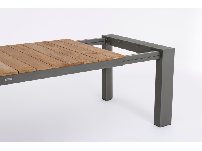 Το Επεκτεινόμενο Τραπέζι Εξωτερικού Χώρου Cameron είναι μια εξαιρετική επιλογή για εξωτερικούς χώρους, προσφέροντας κομψότητα και πρακτικότητα. Κατασκευασμένο από αλουμίνιο με ηλεκτροστατική βαφή γκρι χρώματος, εξασφαλίζει ανθεκτικότητα και μακροχρόνια χρήση. Η επιφάνειά του είναι από μασίφ ξύλο Teak, προσφέροντας μια φυσική και ζεστή αίσθηση στον εξωτερικό σας χώρο. Το τραπέζι διαθέτει επεκτεινόμενο μηχανισμό, επιτρέποντας σας να αυξήσετε το μήκος του από 228 εκ. σε 294 εκ., για να καλύψει μεγαλύτερες ανάγκες σε περίπτωση οικογενειακών ή φιλικών συγκεντρώσεων. Η διάσταση χωρίς την επέκταση είναι 228x100x75 εκ., και η στιβαρή του κατασκευή τον καθιστά ιδανικό για χρήση τόσο σε εσωτερικούς όσο και σε εξωτερικούς χώρους.